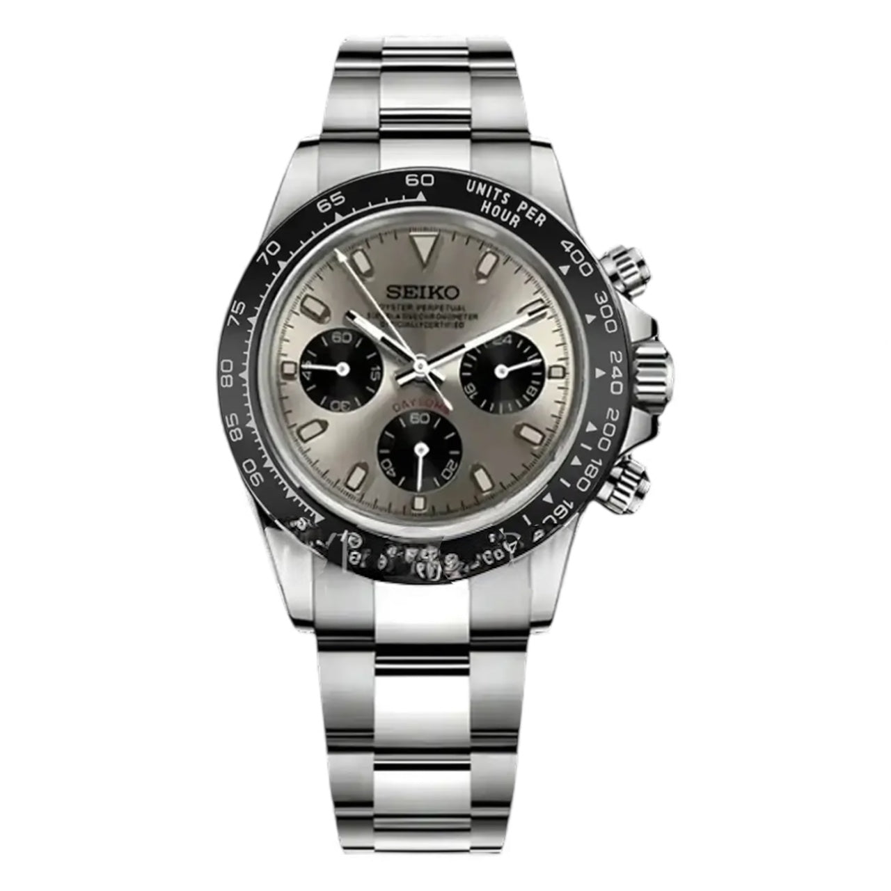 - Movement: Seiko VK63 Mecha-Quartz Chronograph