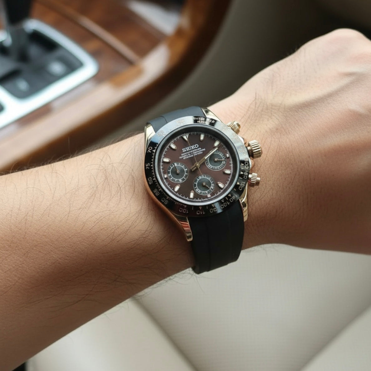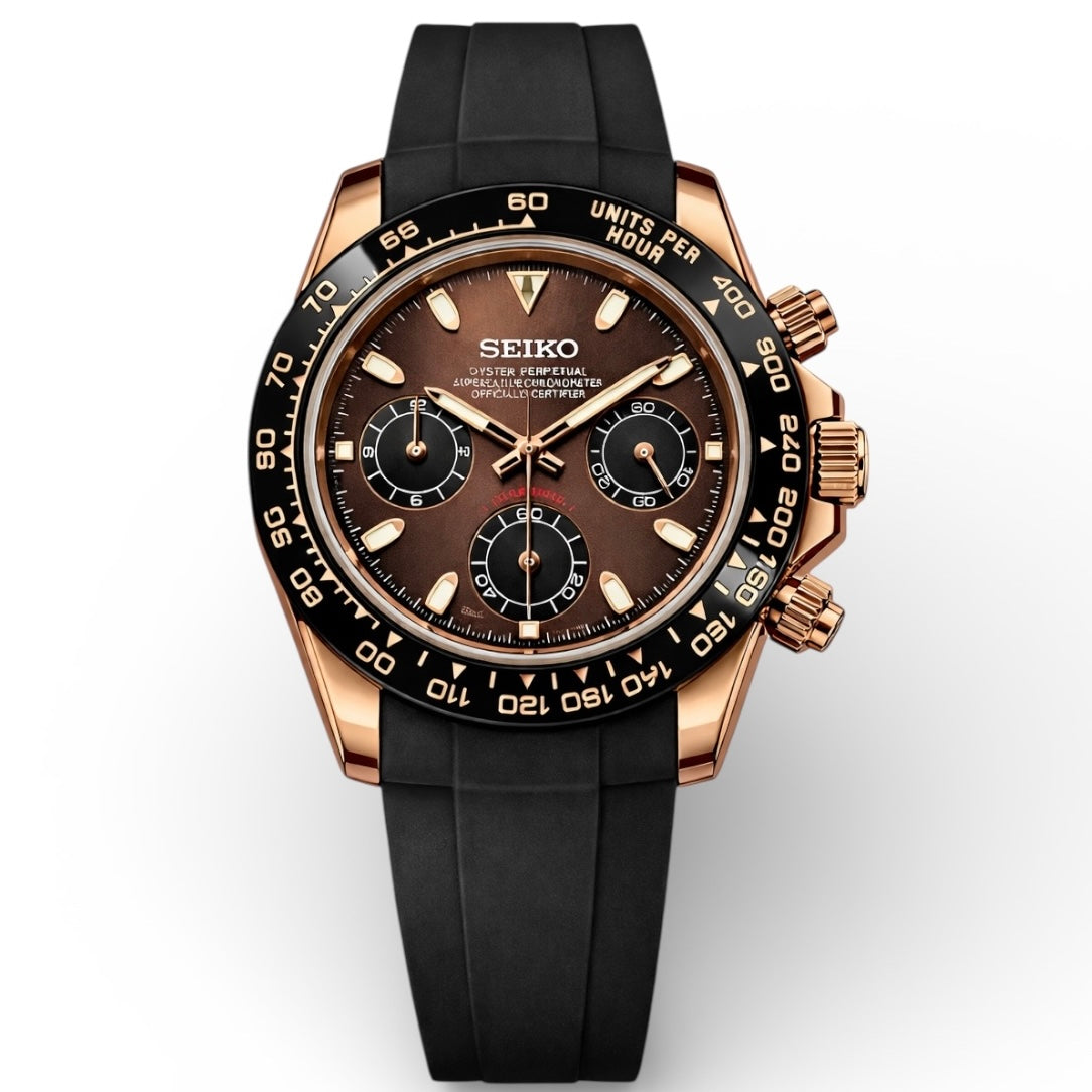 - Movement: Seiko VK63 Mecha-Quartz Chronograph
