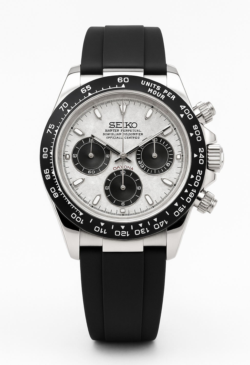 - Movement: Seiko VK63 Mecha-Quartz Chronograph